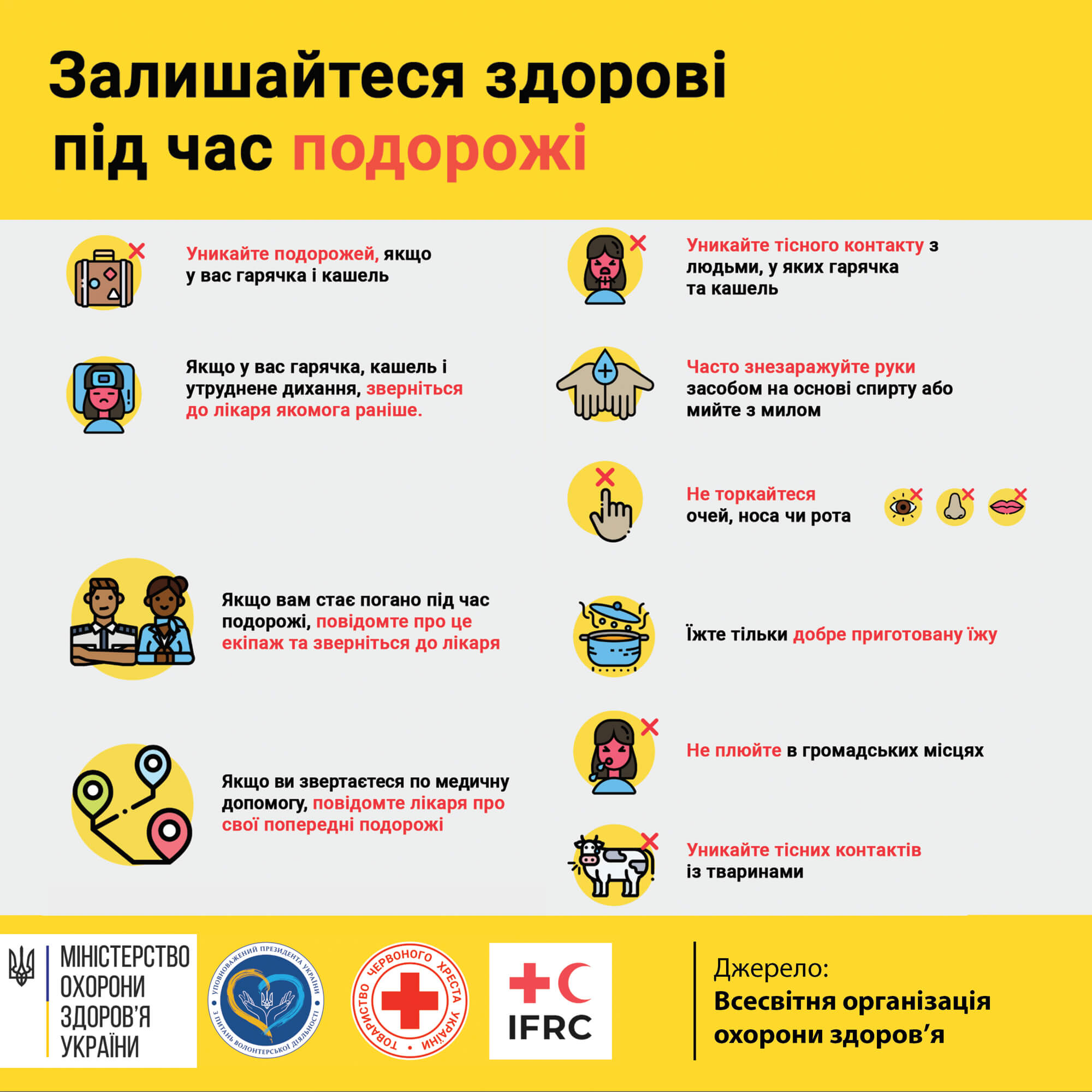 «Избегайте путешествий, если у вас лихорадка, кашель, затрудненное дыхание. Если почувствовали симптомы во время перелета, сообщите об этом экипаж. Заболев, обязательно обратитесь к врачу. Расскажите ему про свой предыдущий маршрут», – отметили в департаменте.