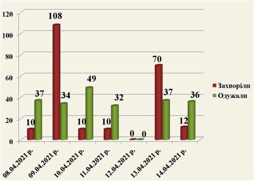 По состоянию на утро 14 апреля по Павлограду зафиксировано 12 новых случаев заболевания COVID-19. Выписано с выздоровлением 36 павлоградцев. Всего под наблюдением врачей находится 557 пациентов, из них 34 ребенка, 506 человек лечится амбулаторно в центре первичной медико-санитарной помощи.