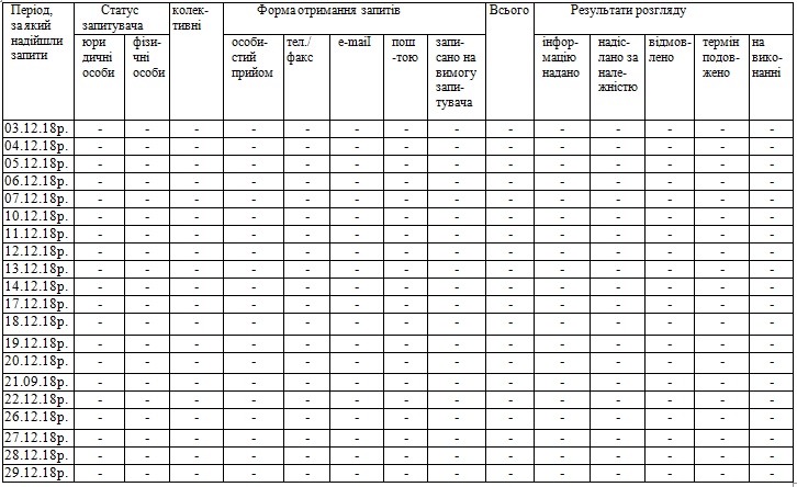 Запросов на публичную информацию, в исполнительный комитет Павлоградского городского совета за декабрь 2018 года - не было.