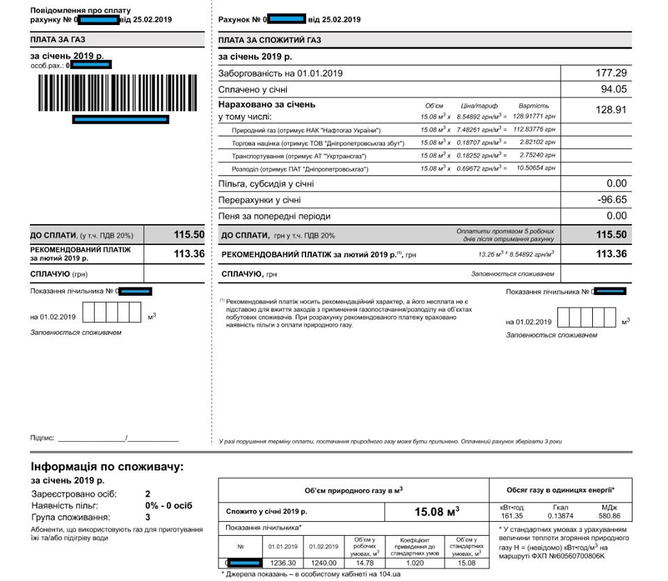 Теперь бытовые потребители газа видят, кому идут их деньги. На примере счета клиента "Днепропетровскгаз сбыта" видно, что с уплаченных 128,91 грн Нафтогаз Украины - Naftogaz получает 112,83 грн, а дочерняя компания Нафтогаза Укртрансгаз получает дополнительно 2,75 грн. В общем Группа компаний Нафтогаза получает более 90% денег с каждой вашей платежки