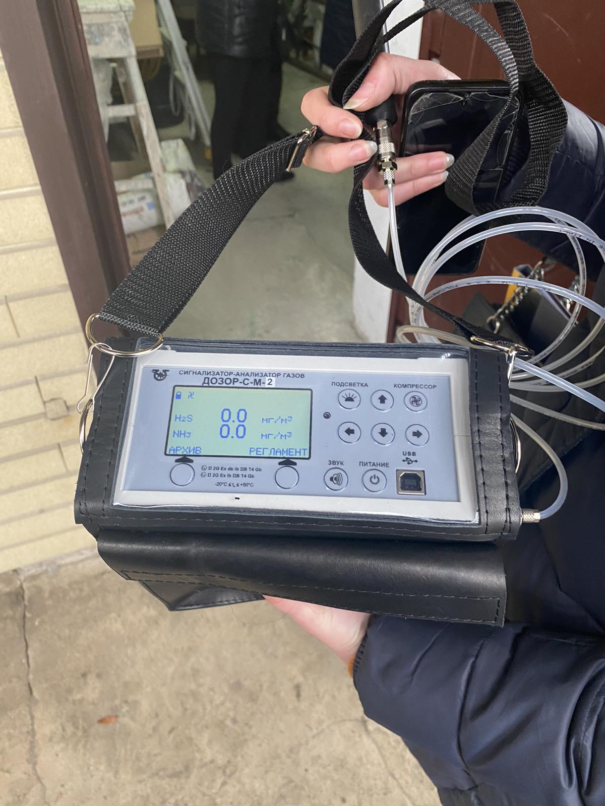 К тому же оказалось, что этот прибор контроля «Центра экологического мониторинга», установленный еще в 2018 году, не подключен к интернету. Комиссия решила измерить качество воздуха поверенным прибором.