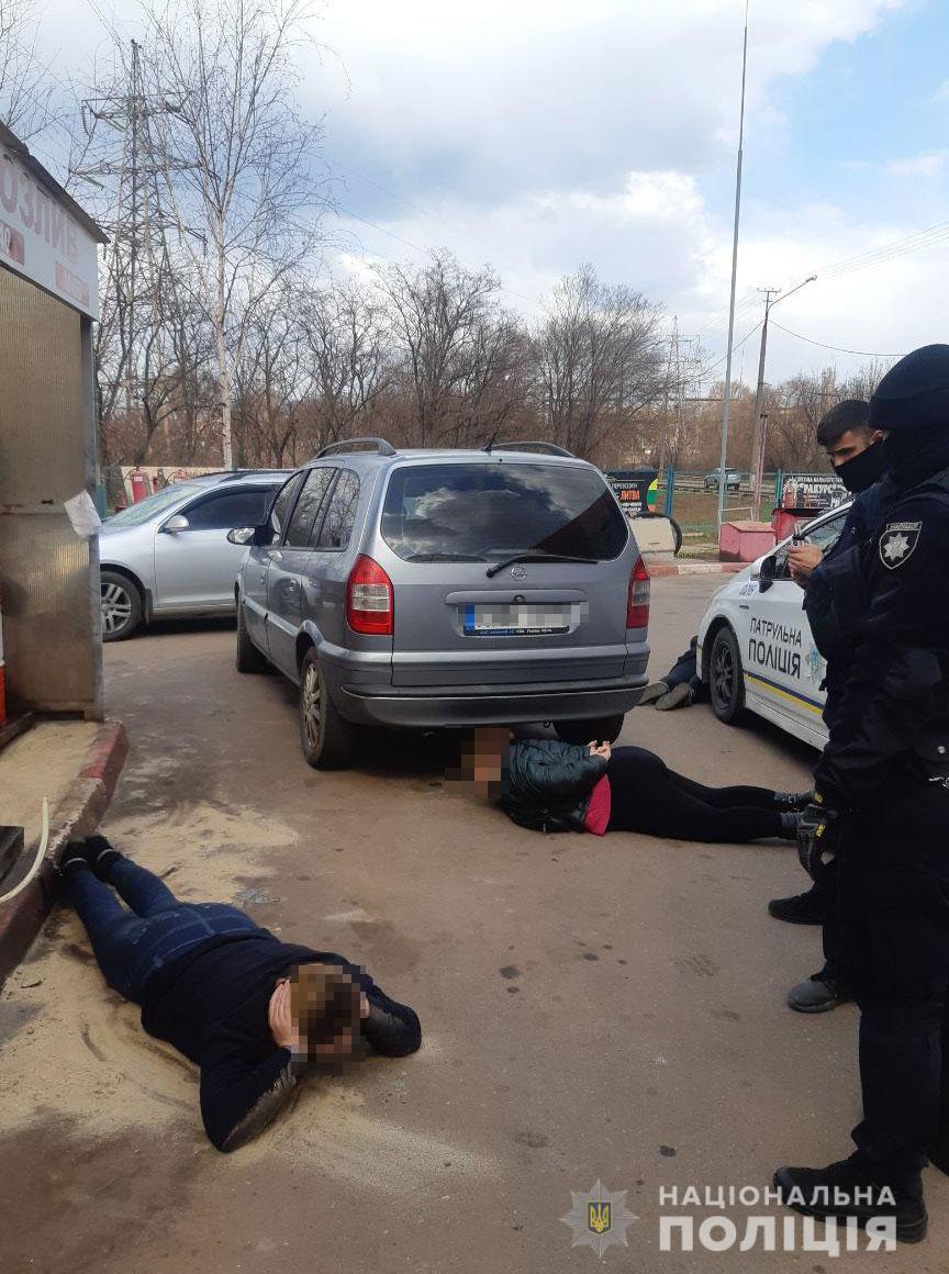 Полицейские установили транспортное средство, на котором скрылись преступницы. Автомобиль остановили на одной из улиц города. В салоне находилось четыре человека: три женщины и водитель авто. Во время досмотра вещей работники полиции обнаружили и изъяли около 12000 гривен.