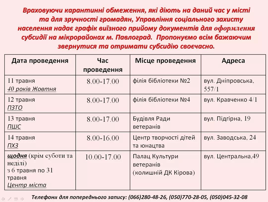 Управление с 6 мая 2021 года начало прием документов во Дворце культуры ветеранов (бывший ДК Кирова). Такие приемы организуют и по районам города: 40 лет октября, ПЗТО, ПШС, ПХЗ. На приём нужно предварительно записаться по тел. 0507702805, 0500453208, 0662804826.